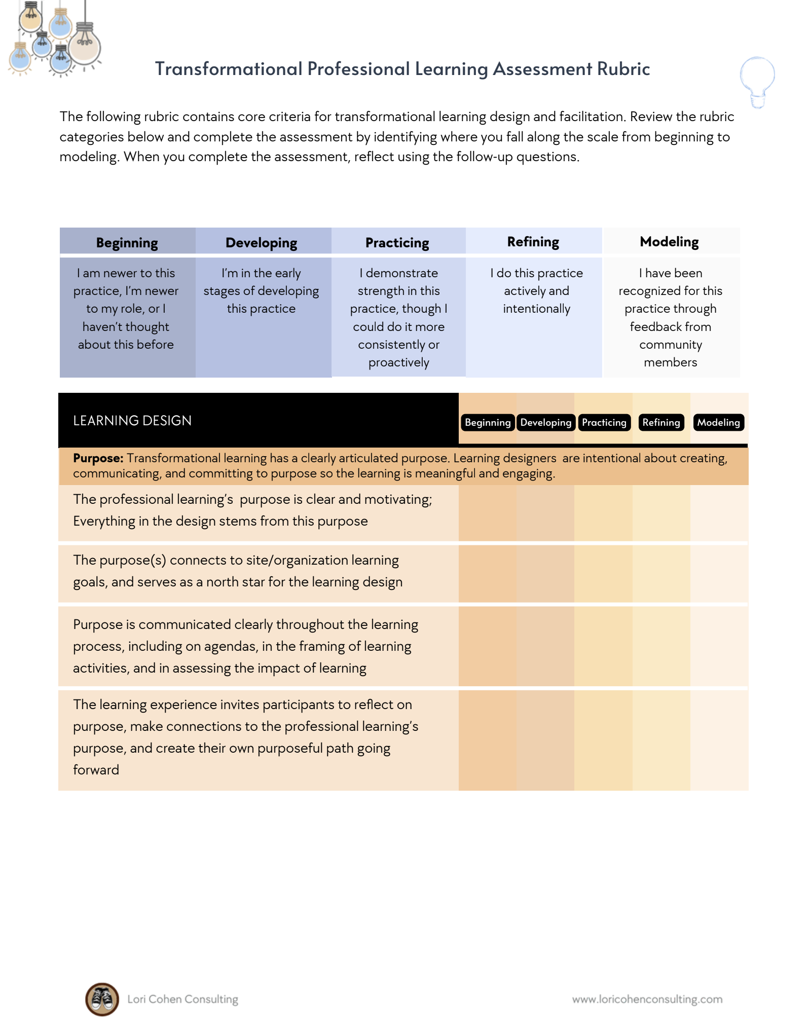 The following tool contains core criteria for transformational professional design and facilitation.